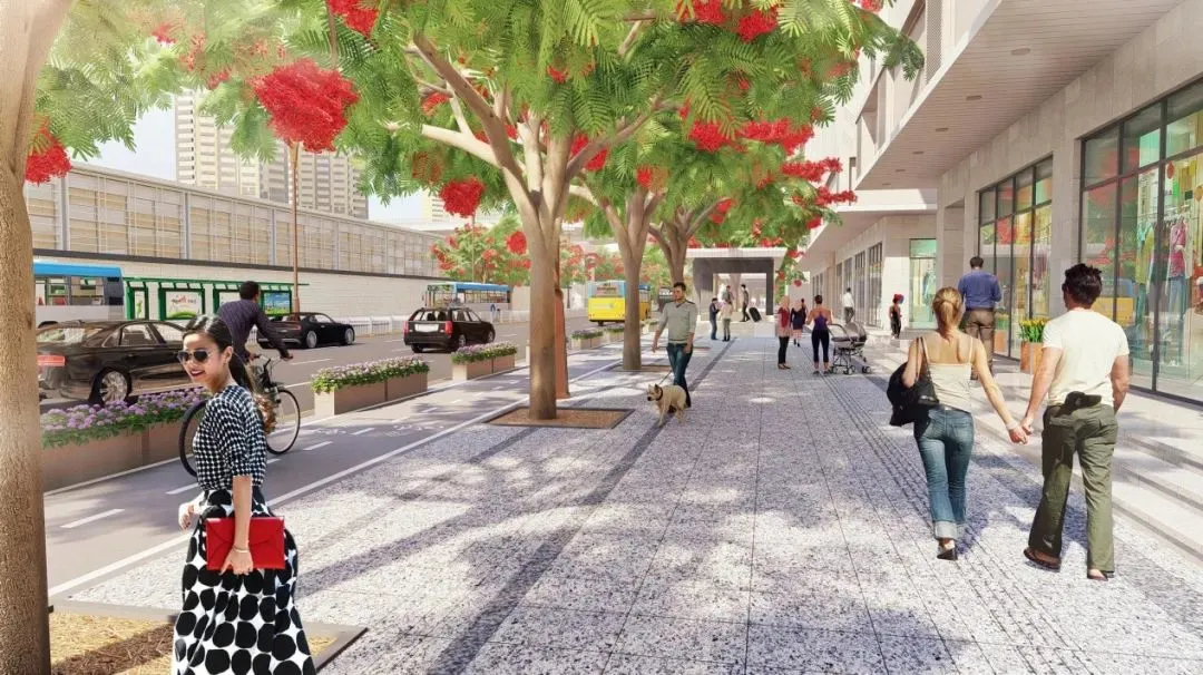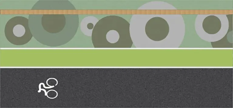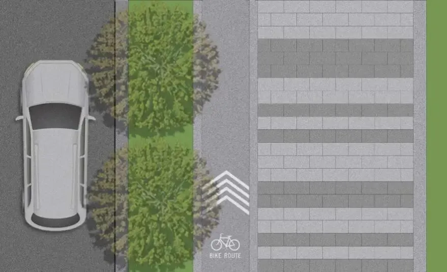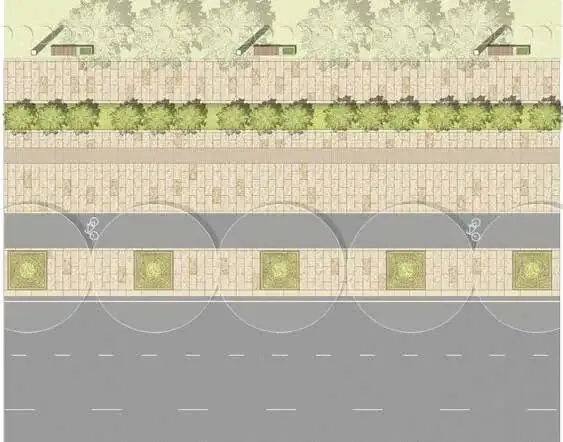 1)米黄色自洁式透水砖工字纵铺,咖色自洁式透水砖跳铺,300*600*100(mm)。