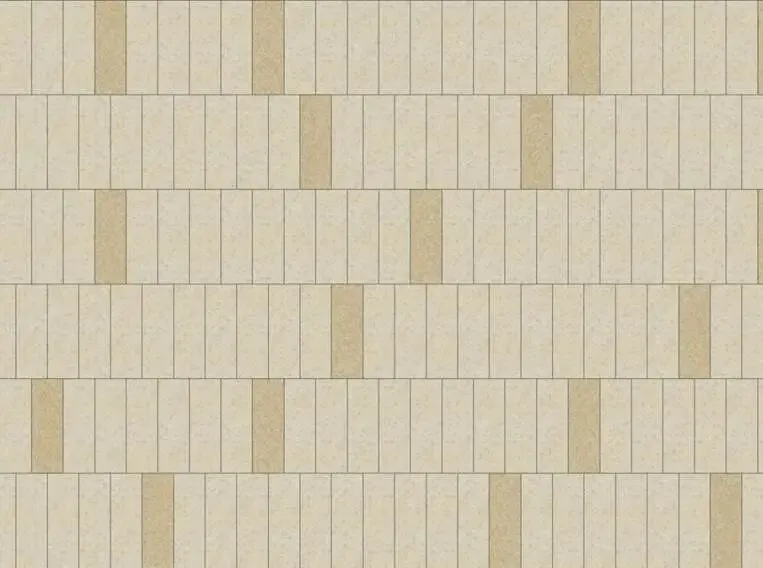 9)水洗面黄锈石工字纵铺,火烧面黄金麻跳铺。300*600(mm)。