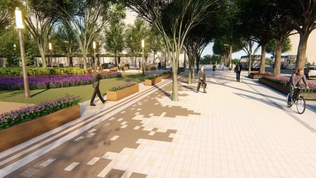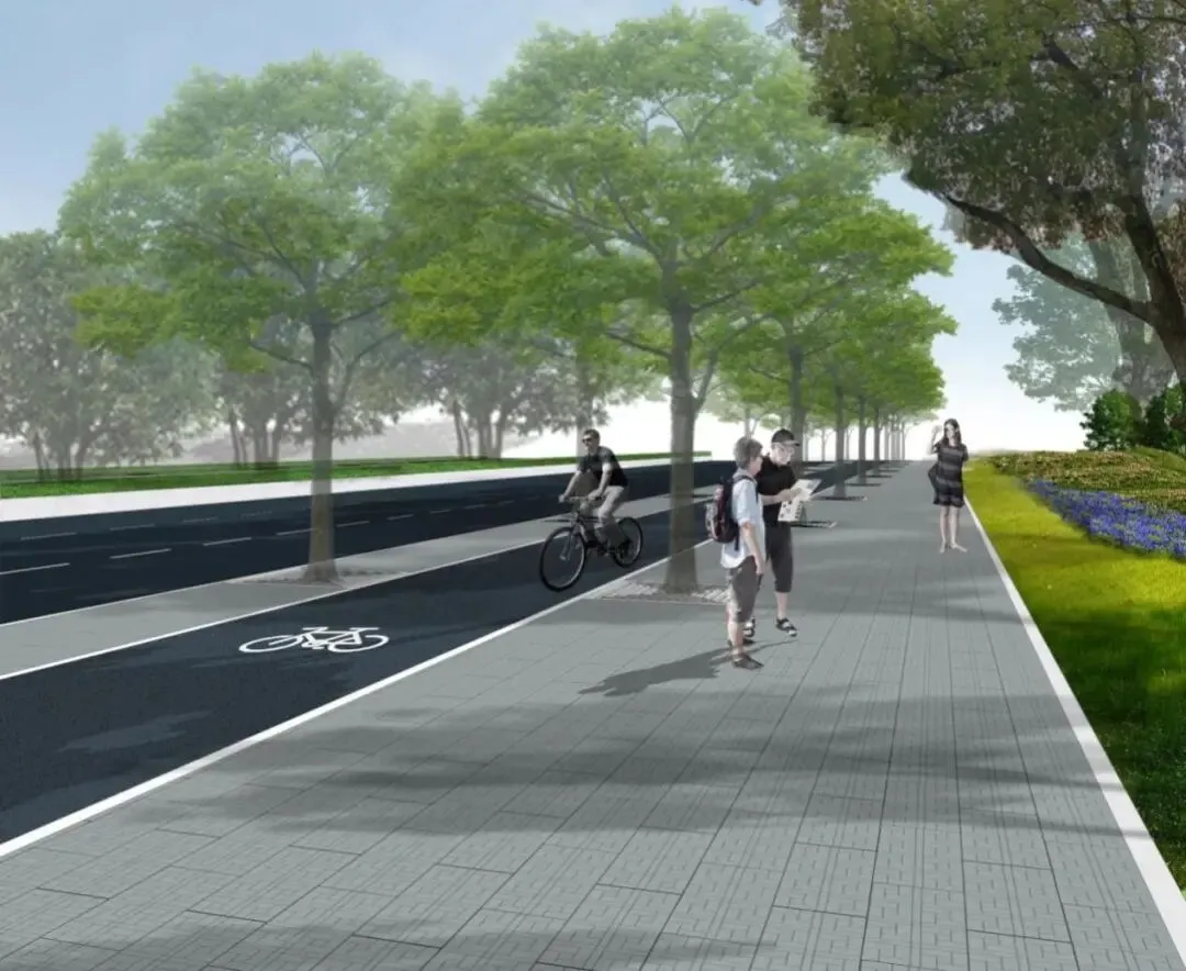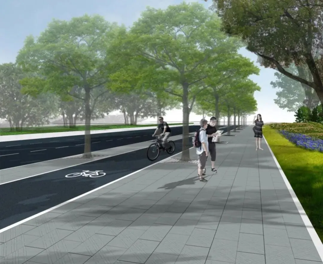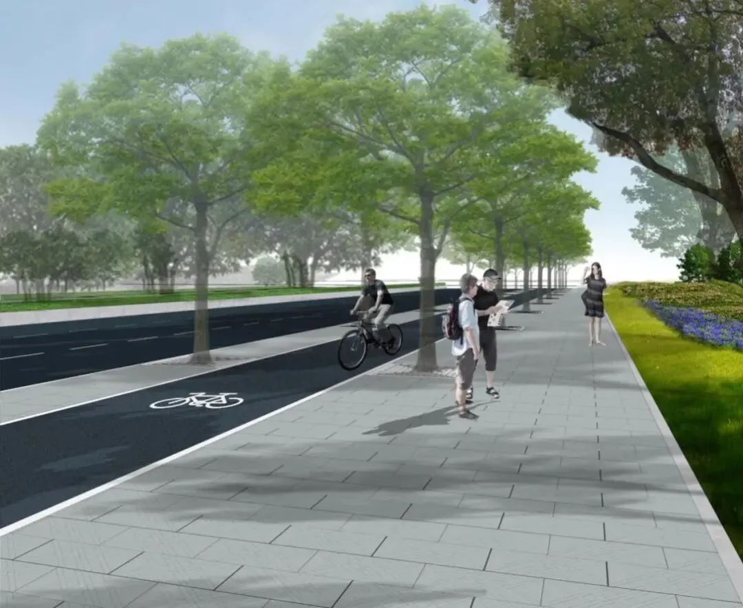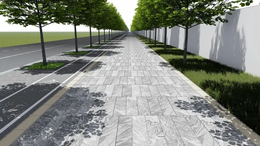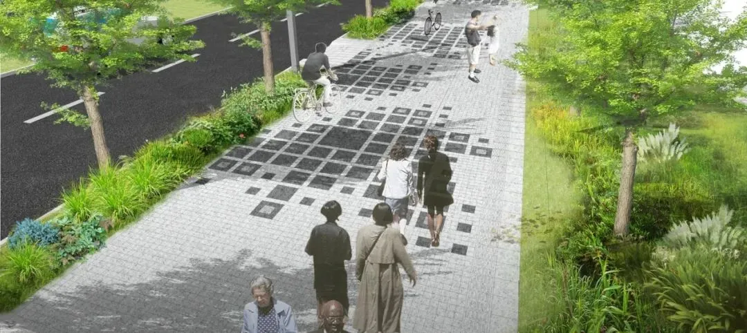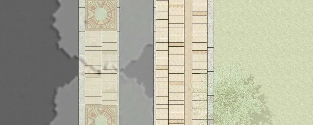3)浅灰、深灰色透水砖工字横铺,300*600*100(mm)。