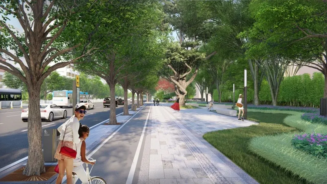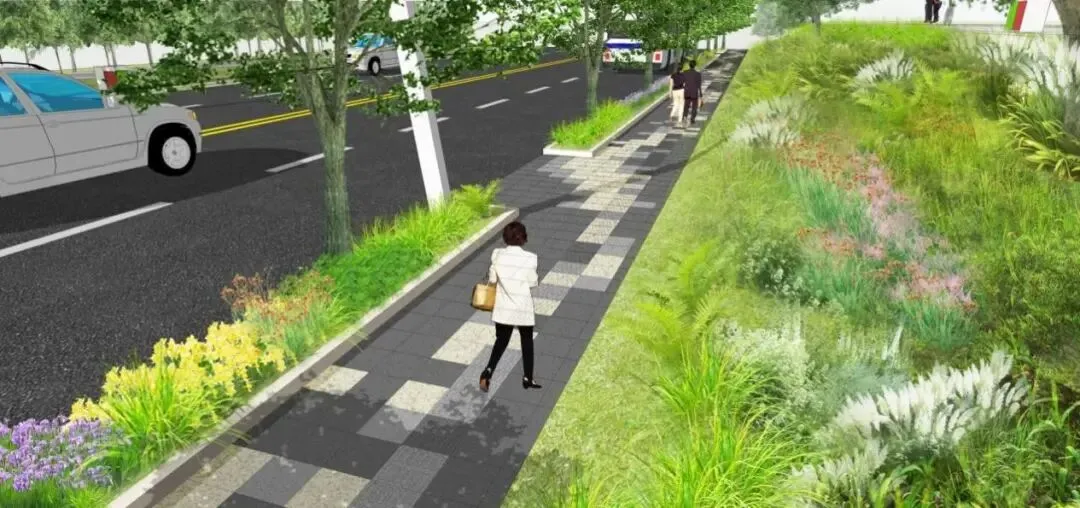 2)浅灰、深灰色陶瓷透水砖对缝铺,300*300*100(mm)。