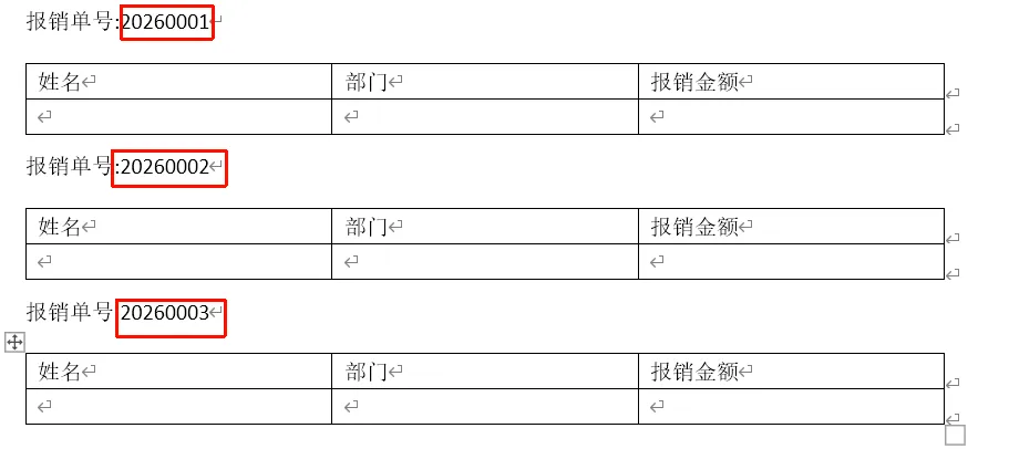 当复制一个报销单到文档后面时,可以实现自动递增编号,无需手工修改。