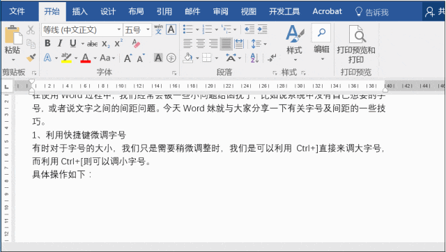 微调字号:选中文字后,使用 Ctrl + ]增大字号,Ctrl + [减小字号,无需鼠标频繁点击下拉菜单。