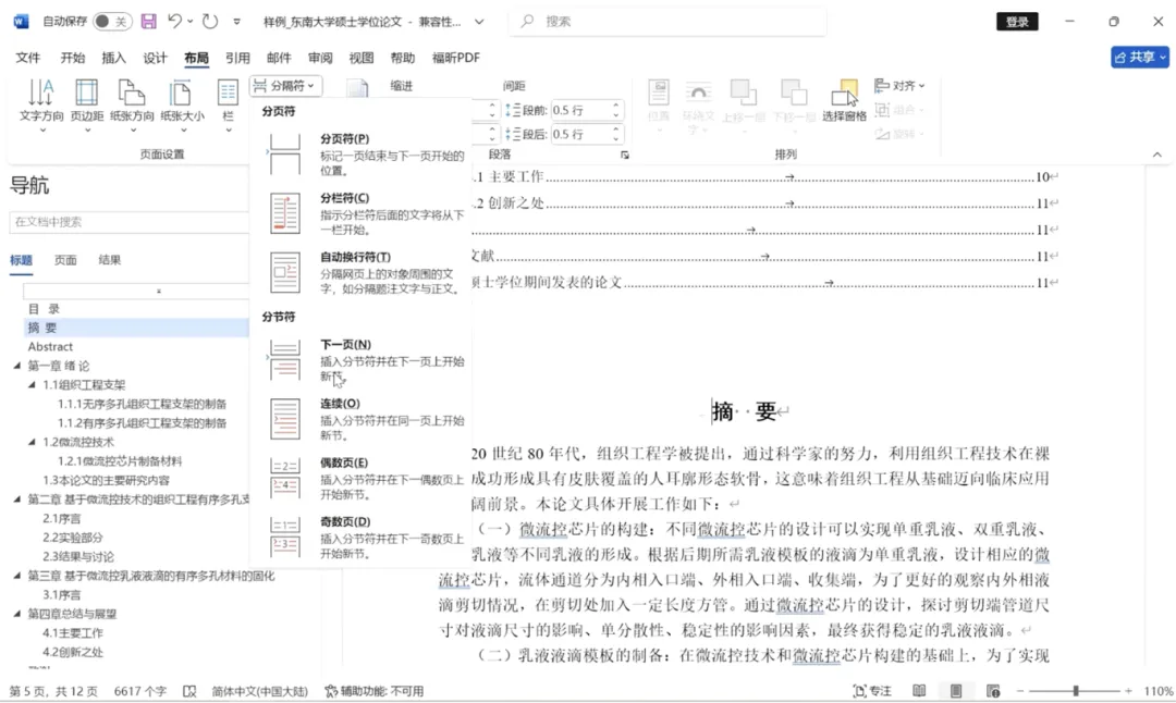 论文不同部分(如封面、摘要、目录、各章节、参考文献)通常需要独立的页码格式或页眉页脚,这依赖于“分节符”。