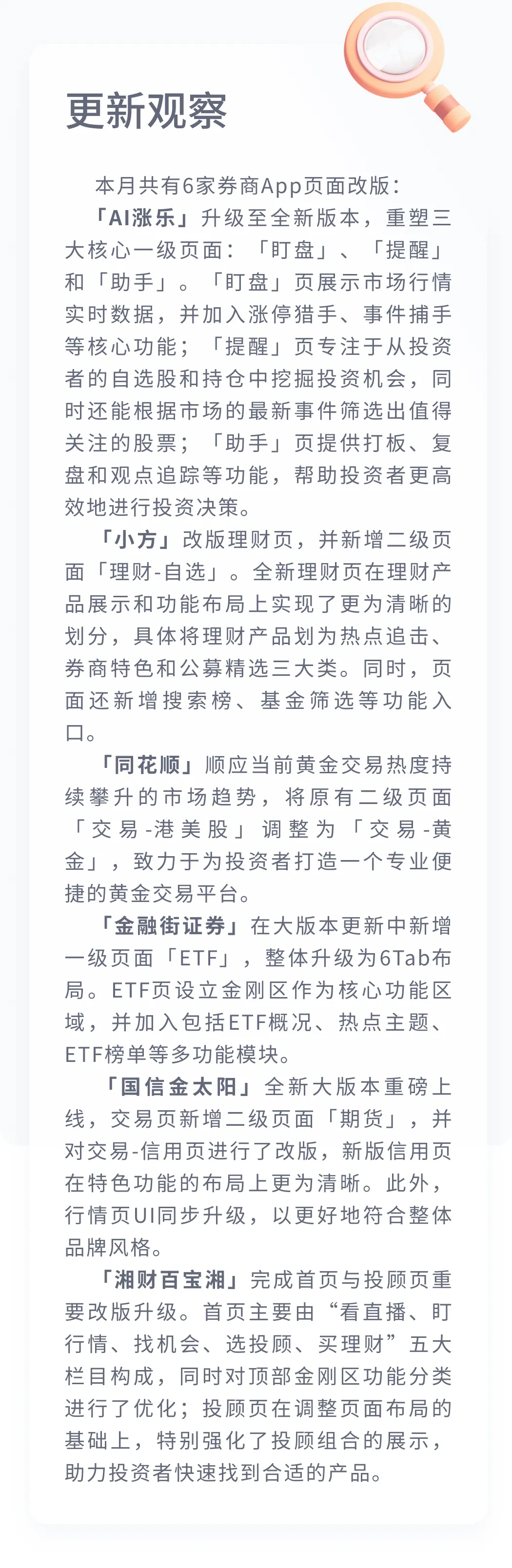 1月券商App更新观察