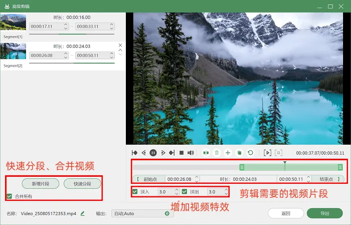 第4步:录制结束后,有后期处理需要的用户可直接点击【高级剪辑】无缝衔接,无需将文件导入其他剪辑软件,即可进行分段、删除等相关操作。