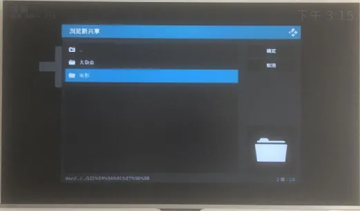 这里我们先是可以看到之前添加的网盘,然后,选择你已经添加电影的网盘,可以看到电影文件夹,选择并确定。