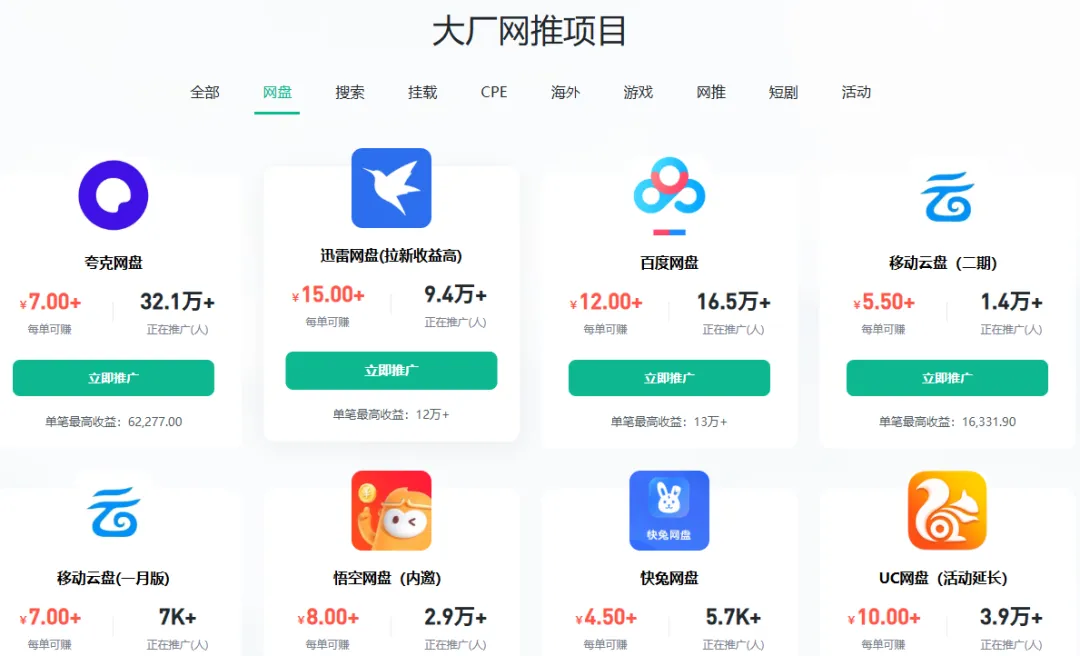 这类平台以APP拉新、网盘拉新、短剧推广、小说推广等为核心,项目集中、流程清晰,适合刚入门的推广员。