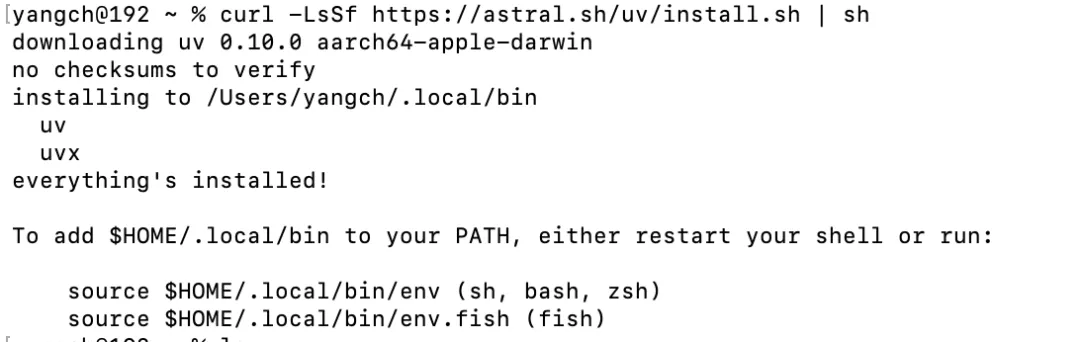 curl -LsSf https://astral.sh/uv/install.sh | sh
