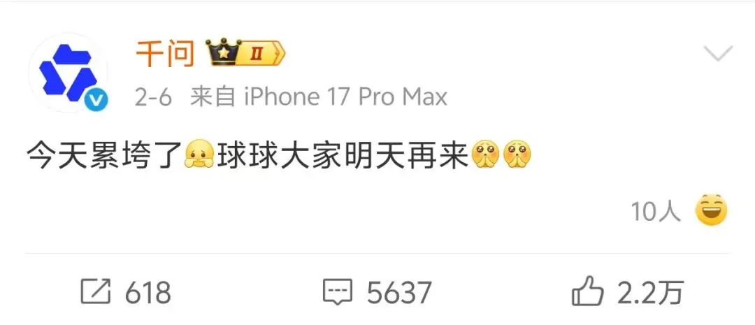但热度来得太快,服务器根本不堪重负——活动启动仅4小时,就有大量用户反馈APP卡顿、闪退、无法登录,免单卡无法领取、下单时抵扣失败,千问APP首次陷入系统拥堵危机,官方紧急发文“今天累垮了,球球大家明天再来”,试图降温。
