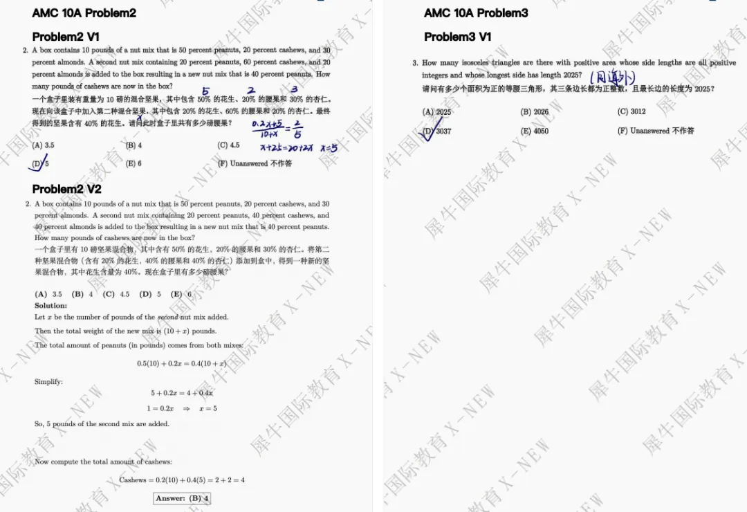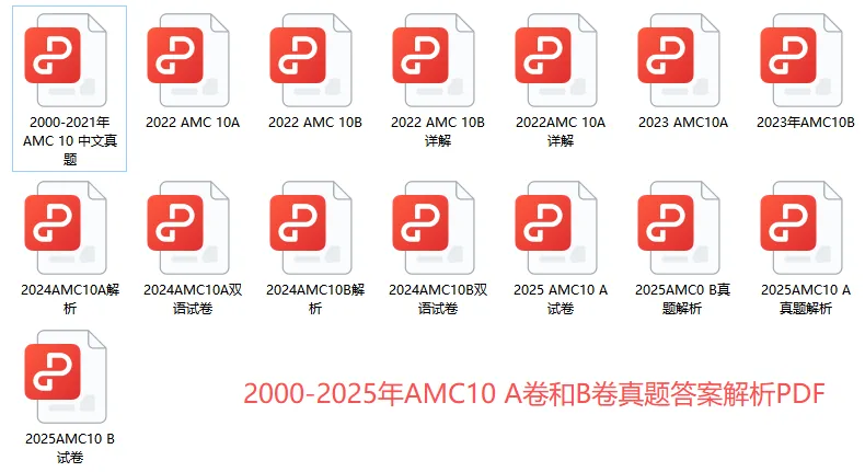 涵盖了从2000-2025年AMC10历年真题资料,A卷和B卷都有,题量多,放榜学生对比总结同类题考点方向和解题思路,还有答案解析,做完题可以及时对答案,复盘错题。