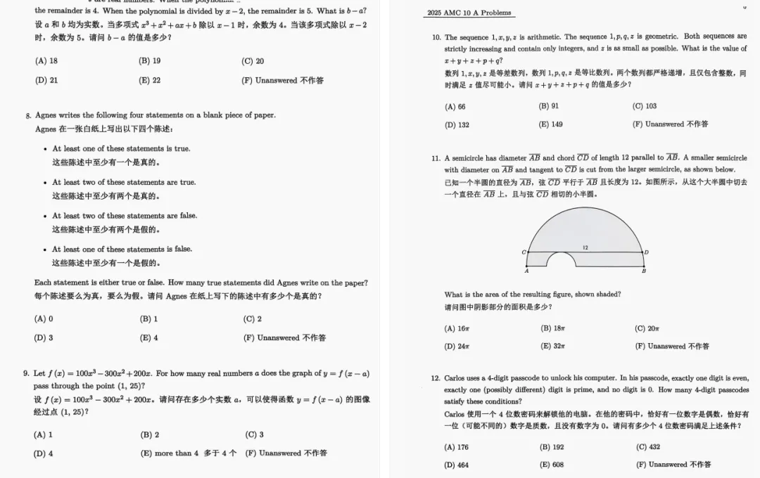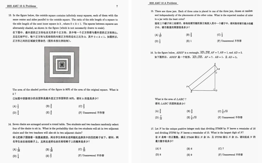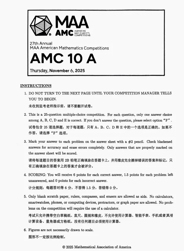 近25年AMC10历年真题pdf资料,想冲前5%或者前1%务必吃透!