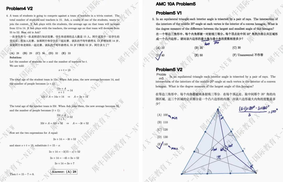 刷题自学进度慢,提升效果不明显的学生可以考虑参加AMC10培训课程,推荐犀牛国际AMC10培训课程,5年以上专研理科国际竞赛经验,AMC竞赛培训已经建立了系统教学方法,并且汇集了清北复交藤校G5毕业师资授课,提升更快!AMC10培训小班课和一对一都有!