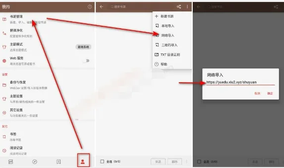 阅读源导入步骤:复制下面的源→进入APP→我的→书源管理→网络导入→粘贴阅读源