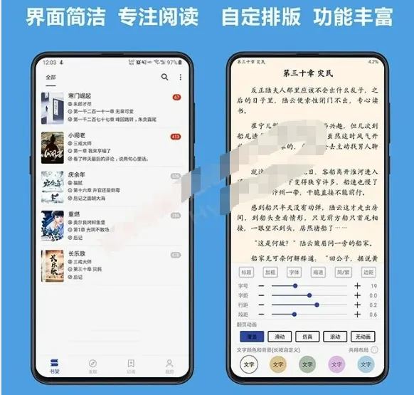 阅读小说界面非常清爽,没有广告,看书的体验很棒。你可以根据自己的喜好去调整字体、背景、亮度、翻页方式等等,让你的阅读更加适合自己的习惯,让看书体验更加舒适。