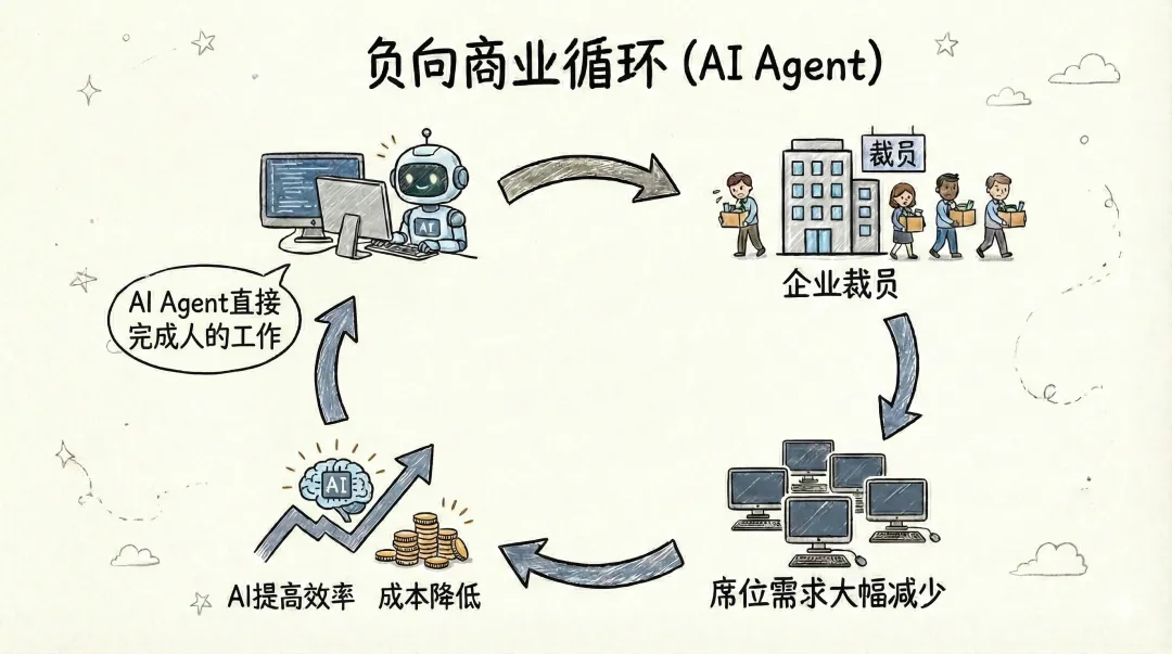 新的逻辑就变成了:AI Agent直接完成人的工作→企业裁员→席位需求大幅减少。方向完全反过来了。