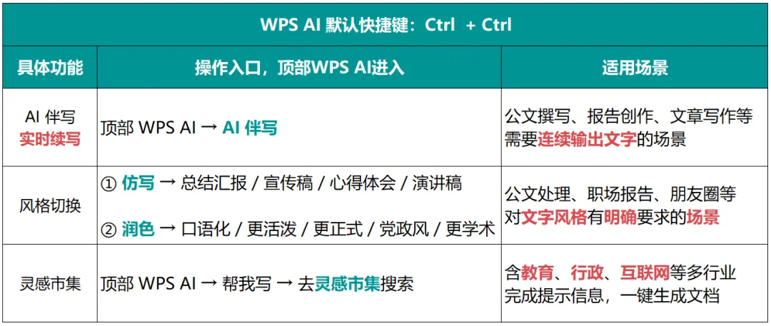 快捷唤醒:文档内还可以双击Ctrl,快捷唤起WPS AI对话框。