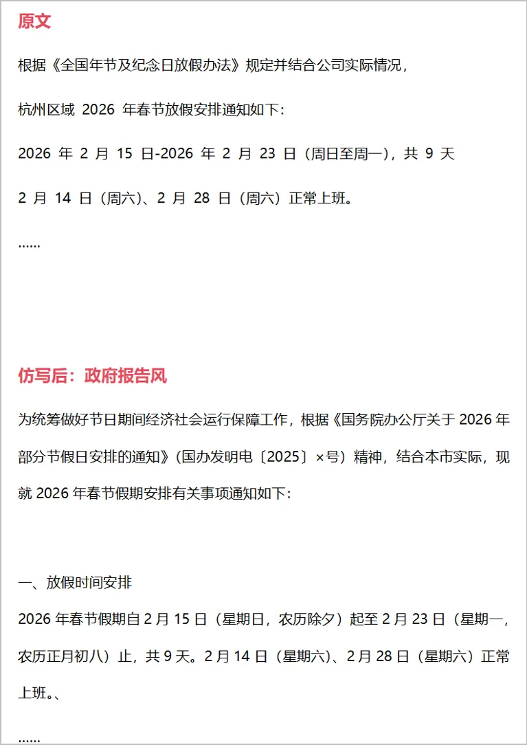VS仿写:适配不同场景的表达要求,比单纯润色更具针对性。