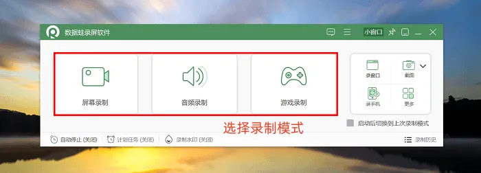 第一步:打开软件,在首屏界面选定适配的录制模式(以下内容将围绕屏幕录制模式进行讲解);