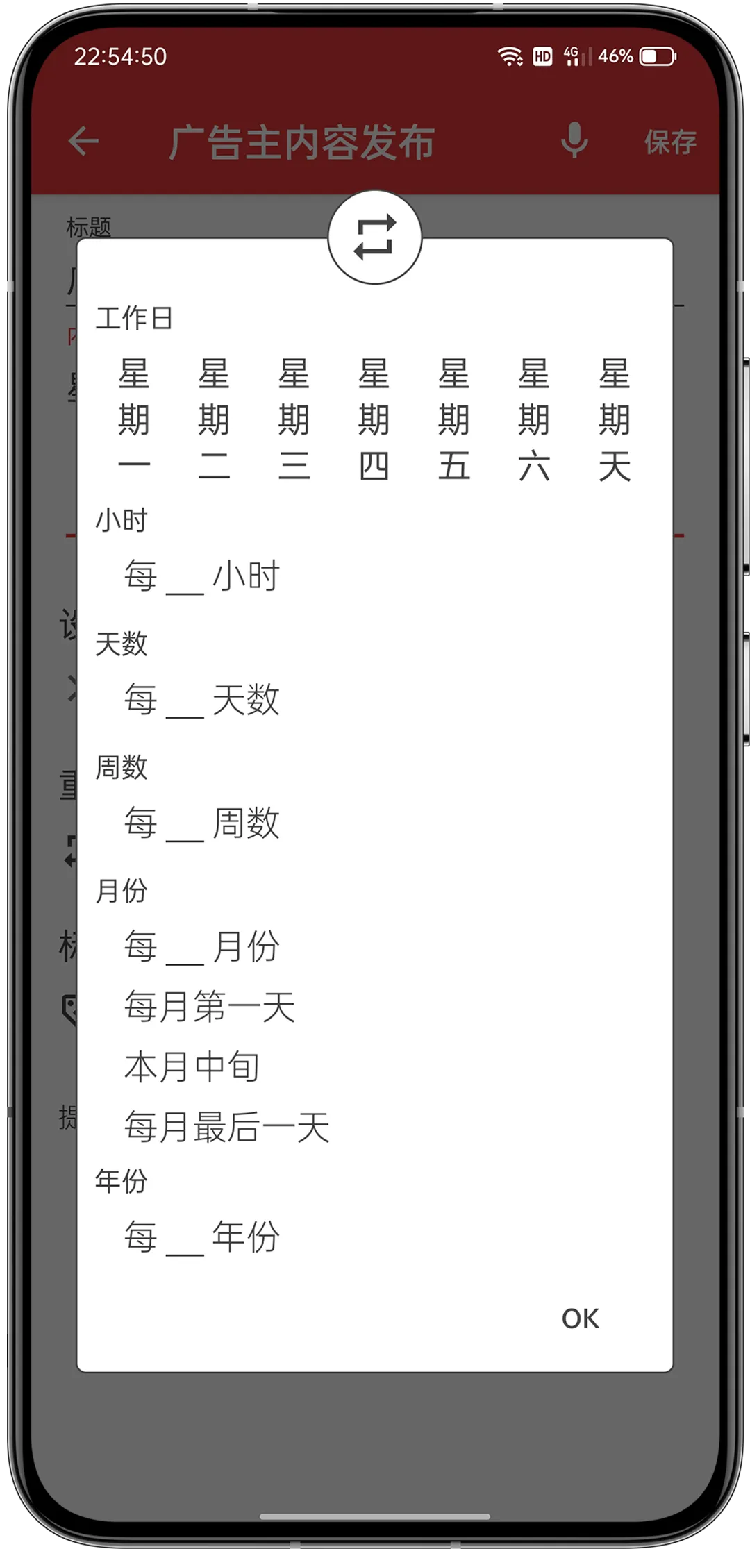 如果还需要重复提醒,可以在 “repeat” 下面的选择周一到周日的重复日期。