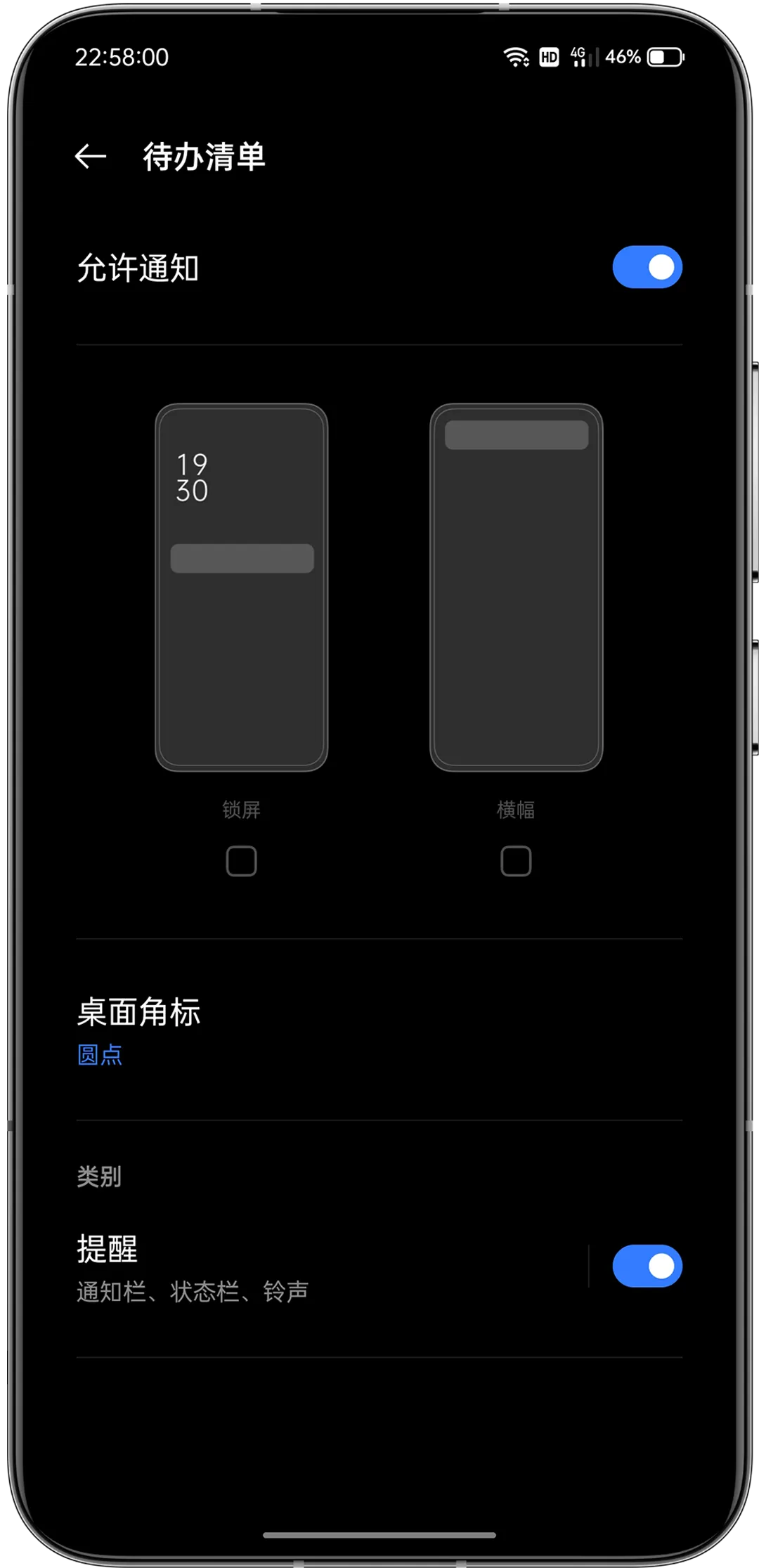顺便说一句,有的手机安装 APP 后默认是关闭 APP 的通知提醒的,这种情况下,即使设置了待办事项提醒,因为系统设置关闭了通知,也就没办法弹窗提醒的。所以安装 APP 之后要在设置中把 APP 的通知权限打开。