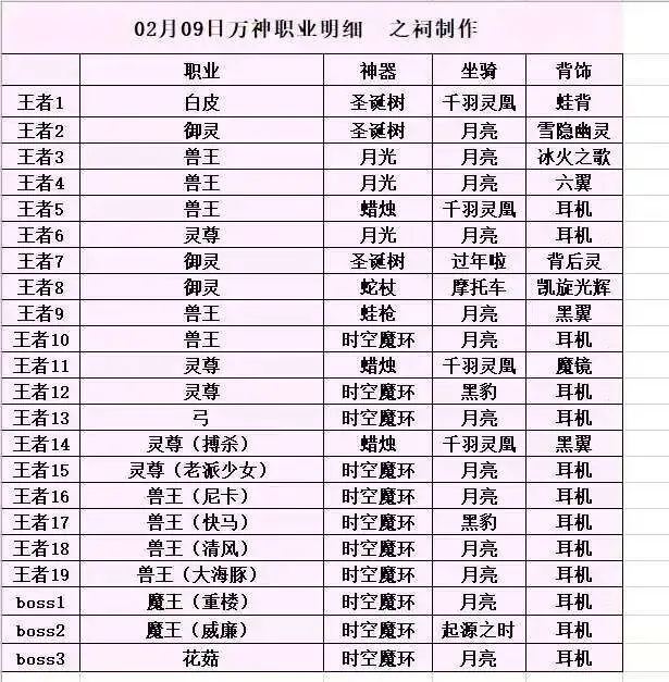 【冒险大作战】2月9日app万神职业明细表(含具体三件套)