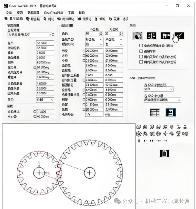 3. 参数化设计:用户可控制所有齿轮属性,通过输入模数、齿数、压力角、宽度、材料类型等参数,快速生成相应的齿轮模型,并且可实时查看设计结果。软件还支持自动计算变位量等参数。