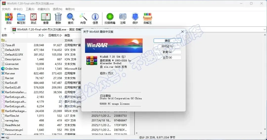 WinRAR简体中文正式版一款全球超过5亿用户都在使用的解压缩软件,WinRAR 这是一款由 win.rar GmbH 开发的专业级数据压缩与归档管理软件,基于 v7.20 Stable 版本构建,采用高效的 RAR5 压缩算法与多线程处理引擎,在保障高压缩率的同时提供数据恢复与安全性功能。本“烈火汉化直装版”由国内技术团队封装,包含简体中文在内的 50 余种语言。