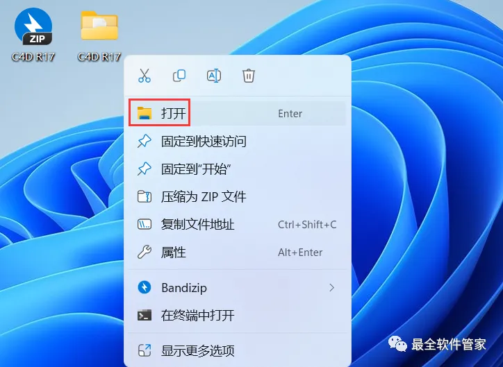 14、回到桌面,右键桌面上的【Cinema 4D R17软件图标】,点击【打开】
