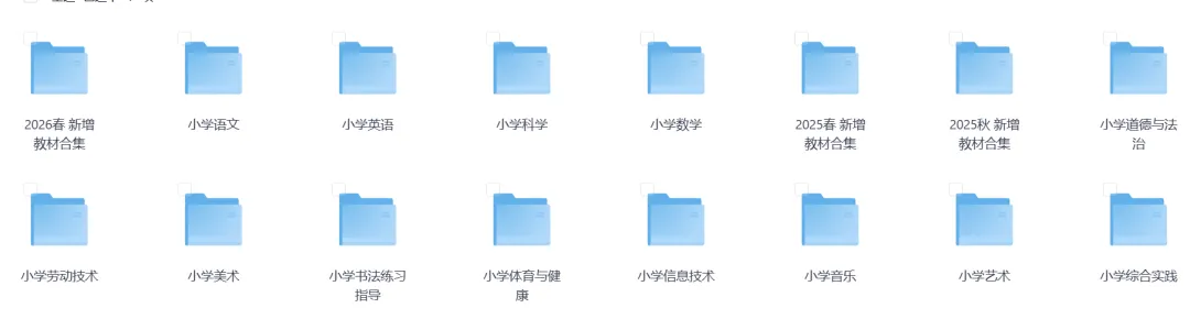 小学/初中全版本全科目电子课本PDF(免费下载) 读者家长们好,此篇分享资料为电子课本合集,小学/初中全版本全科目电子课本PDF(免费下载),部分内容看下图。关注我并点击资料库免费获取! 小学: 初中: 更多资料: 重磅!小学初中家长获取文章或其它资料方式! 【整本书阅读】《论语》分篇目逐条讲解 小学数学人教版培优讲义三到六年级下册 全国中考试题精选天利38系列(2022-2025) 人教版小学数学思维拓展训练一日一练(三到六年级下册) 浙教版小学数学单元素养能力测评试卷(一到六年级下册) 小学数学下册寒假知识汇总 小学英语人教版一到六年级资料汇总(3) 2026版高中《天星教育教材帮》教材同步(数学、语文)必修+选修 小学语文一到六年级下册每日句子练习(家长可打印) 小学数学1-6年级下册 口算题卡 小学语文1-6年级下册 晨读晚默(可打印) 小学语文作文素材大全(1-6年级通用) 《英语口语词汇学习 15000英语单词口袋书》 人教部编版小学数学一六三四五二年级上下期中期末电子版试卷 新人教版初中七八年级上下册单词表英译汉(单词合集) 2025年高三大一轮复习资料 (全九科) 初中七八九年级上册物化生地期末模拟卷 初中数学《每日一练》 更多内容请关注我并点击免费资料-资料库获取!