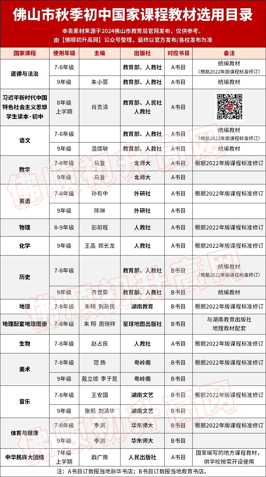 佛山初高下学期课本是哪些?为你汇总!附免费电子版下载