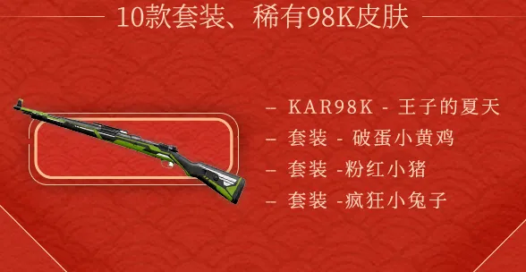 《和平精英》这次也放出了破蛋小黄鸡和粉红小猪套装作为奖励,还有KAR98K—王子的夏天,这款皮肤配色简单、素雅,非常的“小清新”,颜色表现以及装扮款式都具有很高的观赏价值,喜欢的小伙伴们快来将它从奖池中摇走~