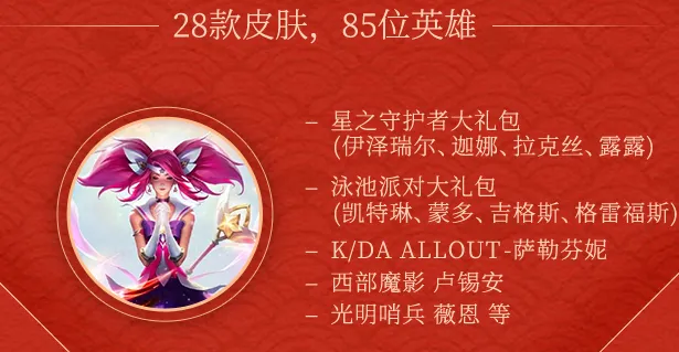 《英雄联盟手游》同样为玩家备好了豪华大礼包,拥有着超高人气与收藏价值的星之守护者系列,特效、故事都是极其出彩,还有外观和手感都一流的泳池派对系列,不过据最新消息:已调整为源计划大礼包!让召唤师们在峡谷战斗里兼顾操作的同时能够拥有潇洒的外表,还有非常受大家欢迎的K/DA系列和光明哨兵,西部魔影等高品质皮肤等待小伙伴们“出手”!