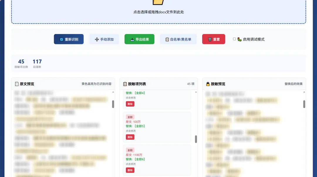 自用开发|法律文件脱敏处理工具