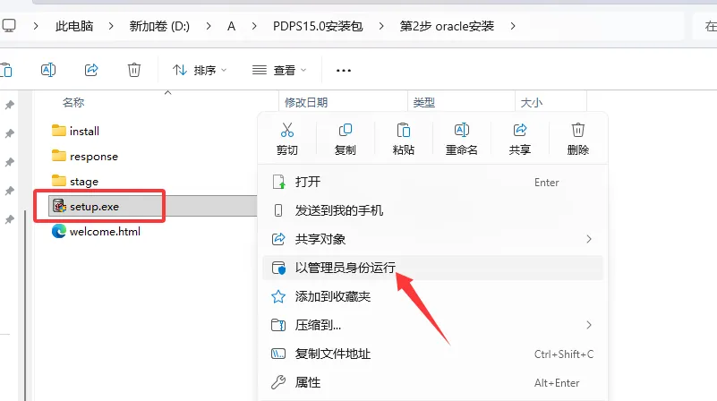 2、数据库安装。运行setup安装Oracle。