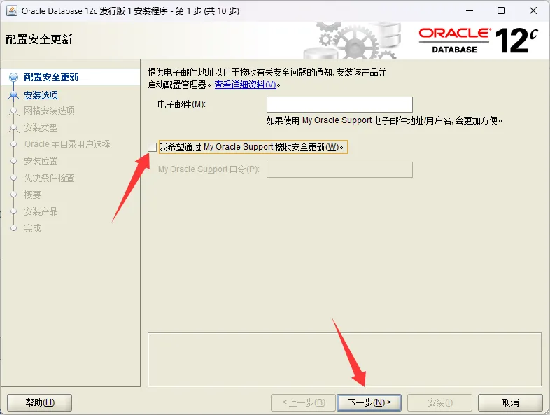 3、安全更新勾选去掉,点击下一步。