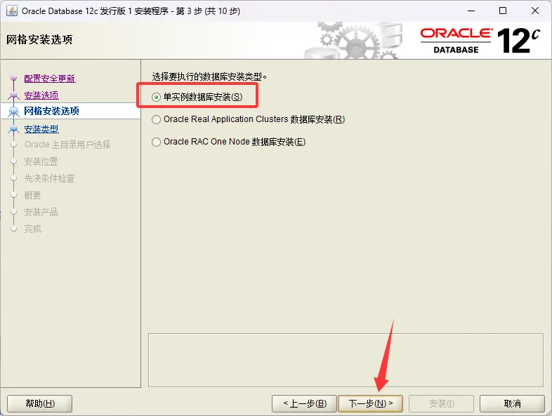 6、选择单实例数据库安装,点击下一步。