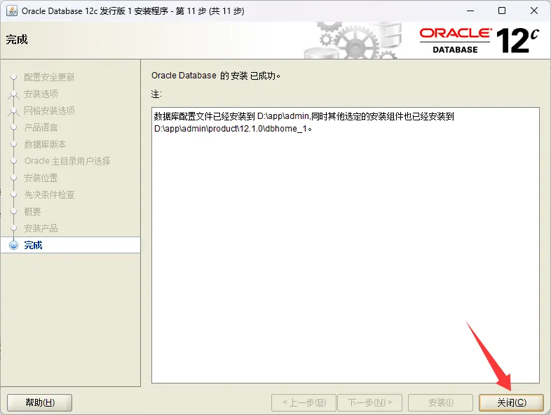 14、数据库安装结束,点击关闭。