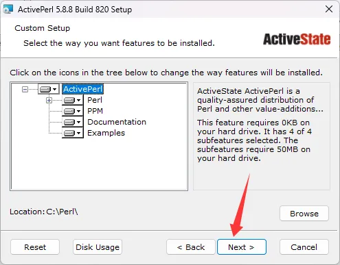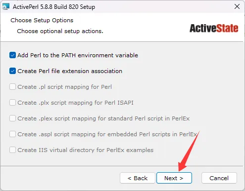 15、安装Perl语言。(参考下图闭眼装就行)