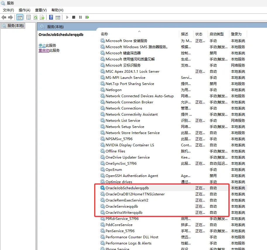 42、将所有oracle开头的服务更改为自动,并重新启动。