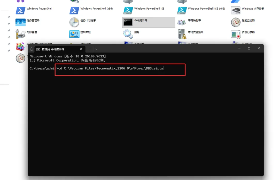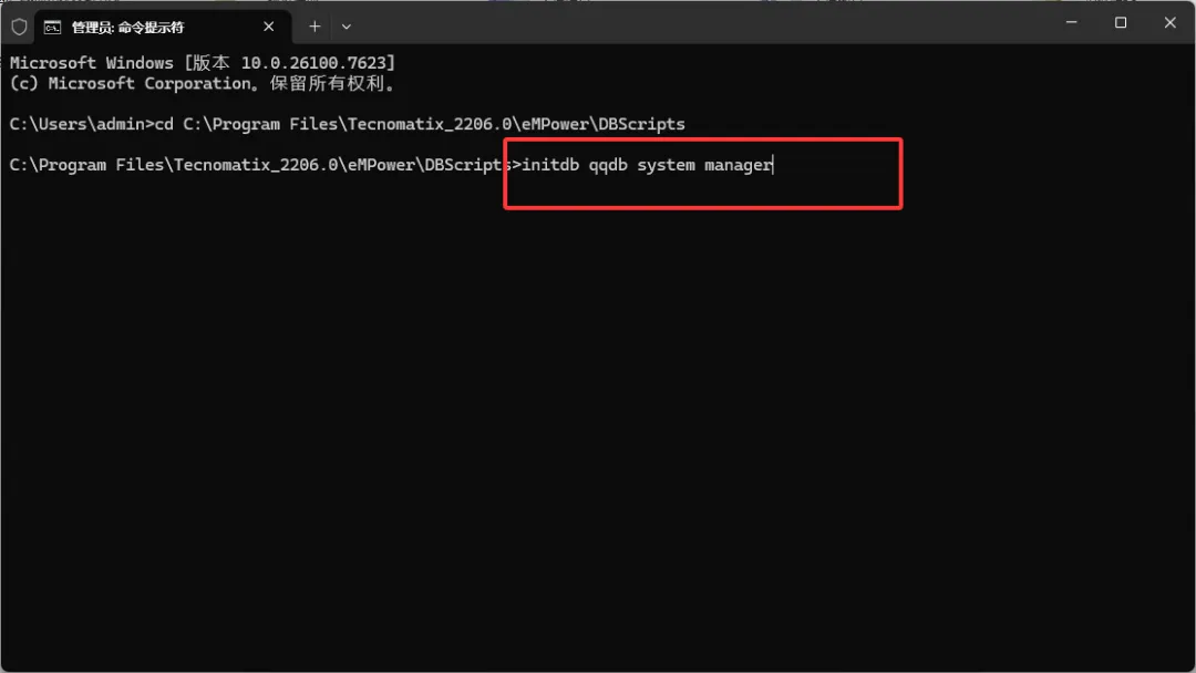 1、创建数据库实例。Dos中输入cd +initDB.bat文件路径(安装位置的eMPower——DBScripts下)注意cd后有空格。参考路径:cd C:\Program Files\Tecnomatix_2206.0\eMPower\DBScripts