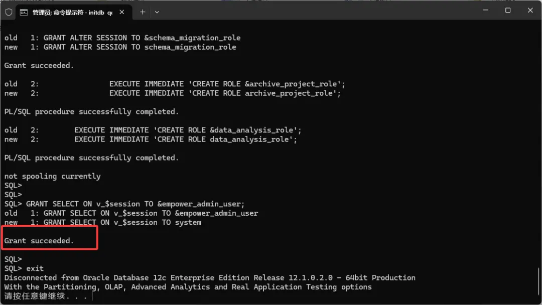 4、表空间创建成功。