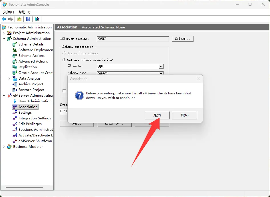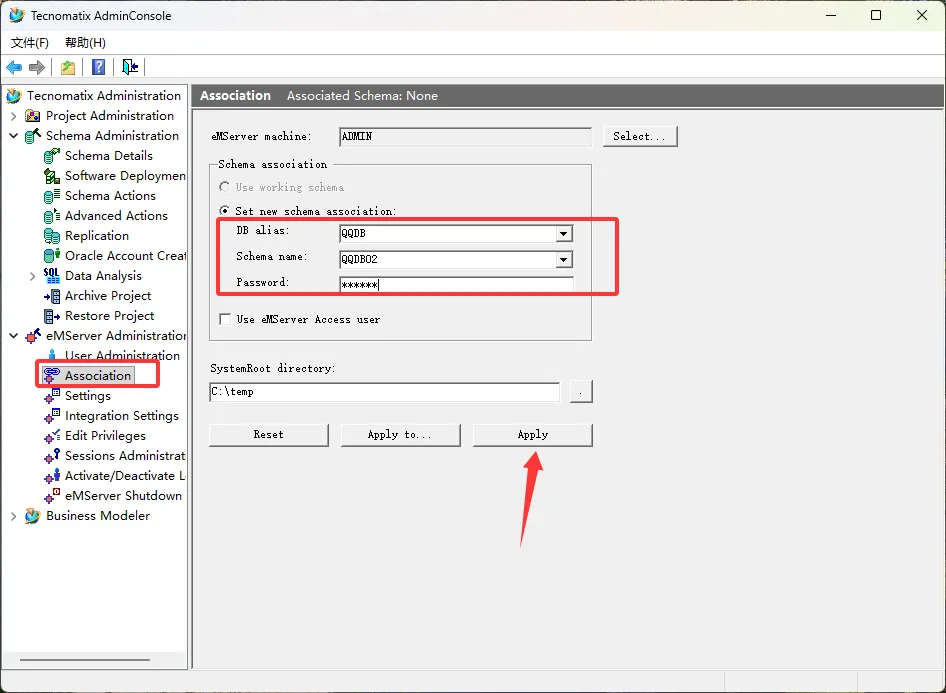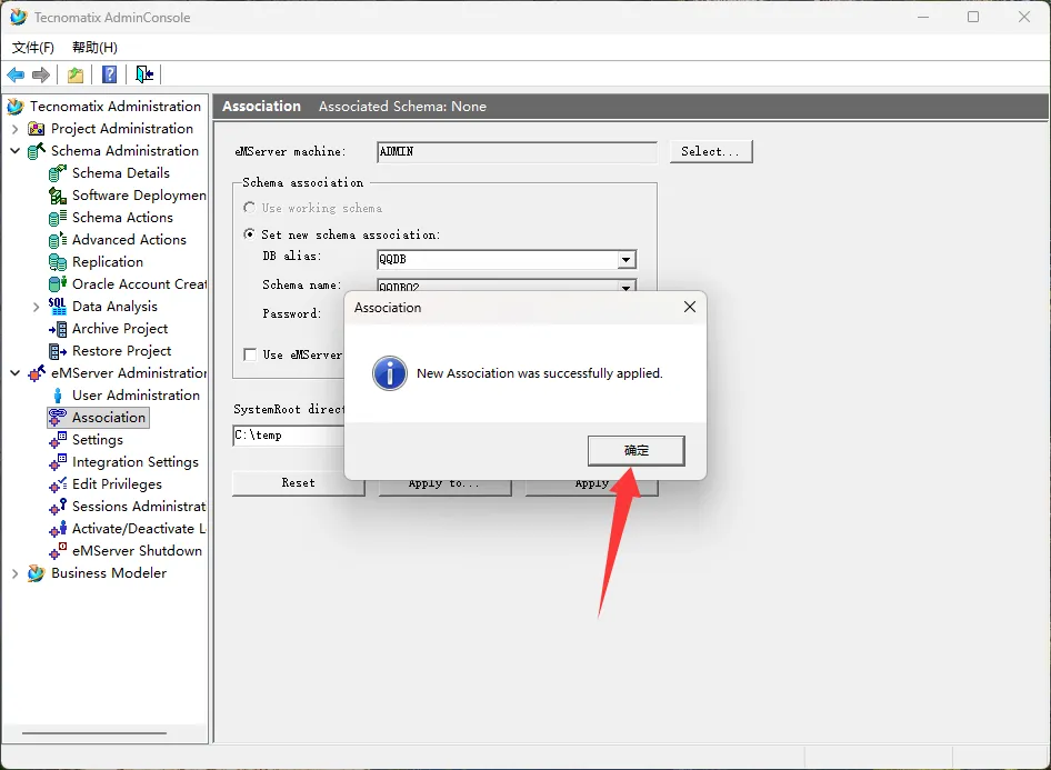 50、选择Association项,选择表空间,输入密码,点击Apply,选择是,点击确定。