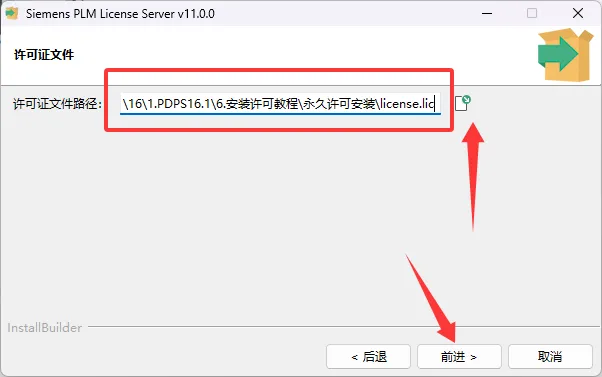 55、选择刚刚前面更改好的license文件,点击前进。