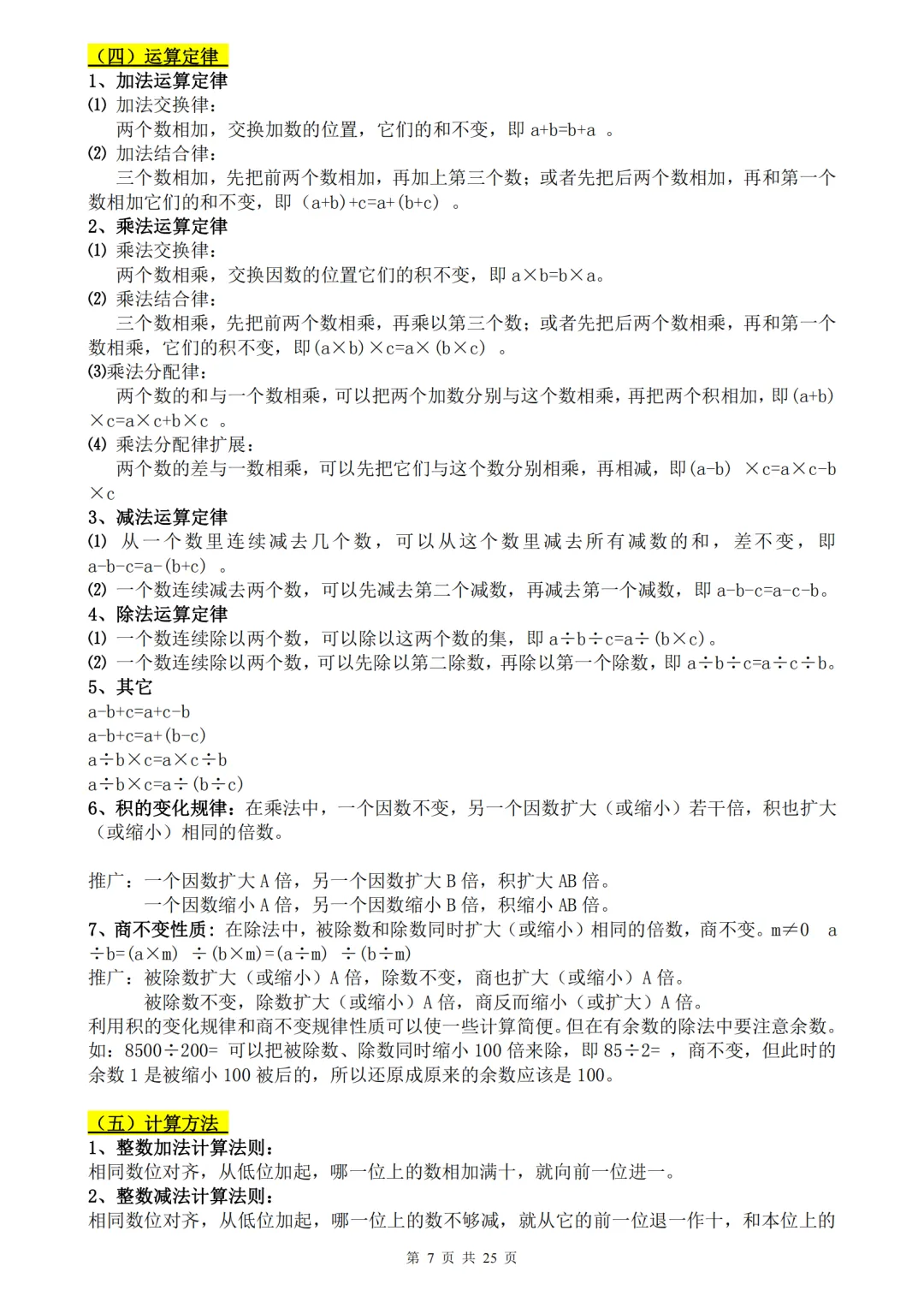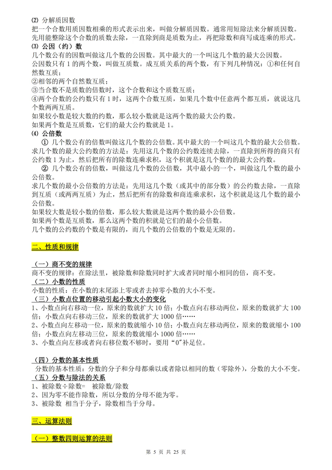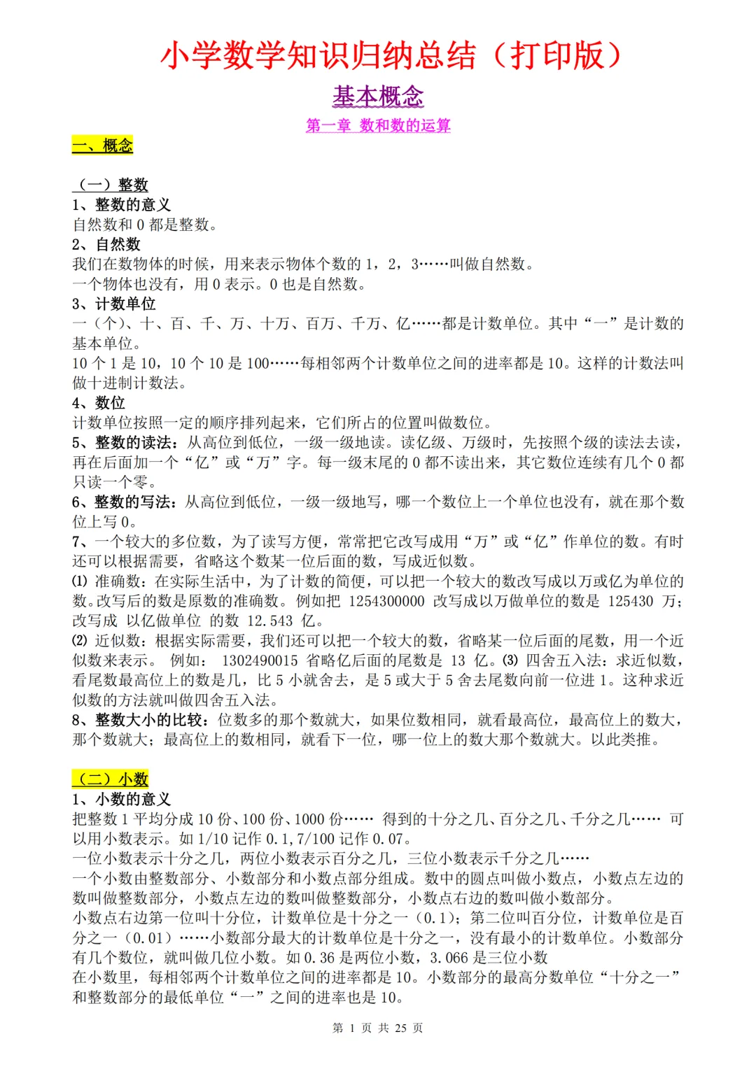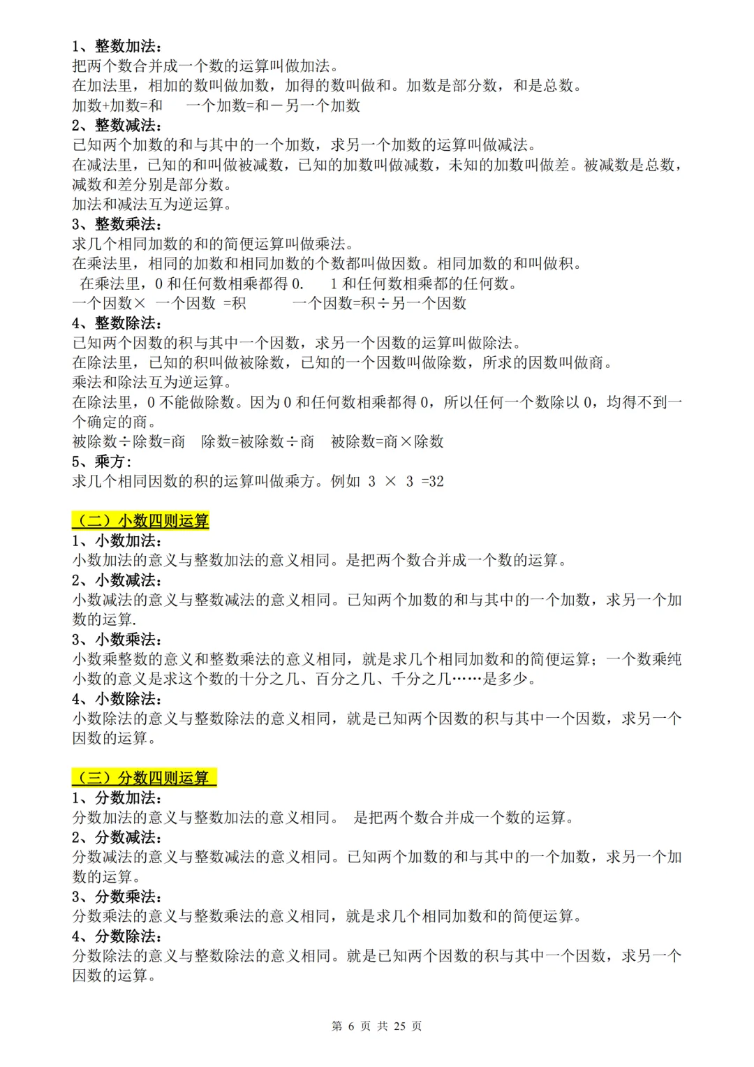 小学数学1-6年级知识点、公式定理汇总pdf,原来学数学这么简单
