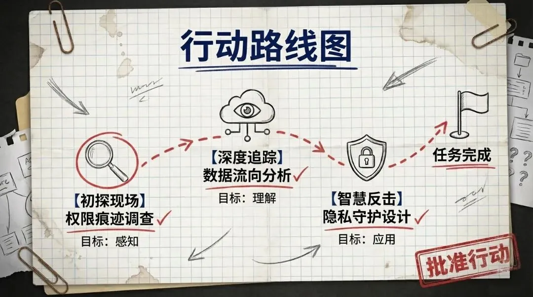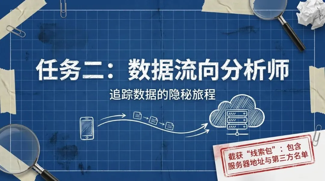 任务从“权限痕迹调查员”开始,揭开App索取通讯录、位置、麦克风等权限的真相,引导我们思考:哪些是功能必需?哪些是越界索取?紧接着,“数据流向分析师”追踪数据从采集、传输到存储与共享的全过程,揭示未加密传输、服务器泄露与数据贩卖三重风险。