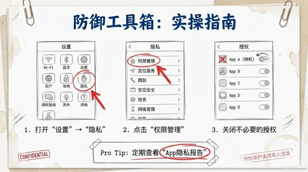 最终,“隐私守护设计师”登场,为我们装备法律武器与实操工具,倡导“最小必要原则”,并鼓励每个人用海报、视频、建议书等形式,成为真正的“数字卫士”。