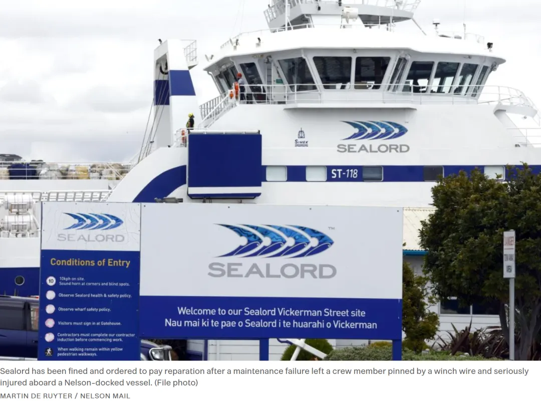 10.海产品公司Sealord因卷扬机事故被判罚,船员重伤获赔偿