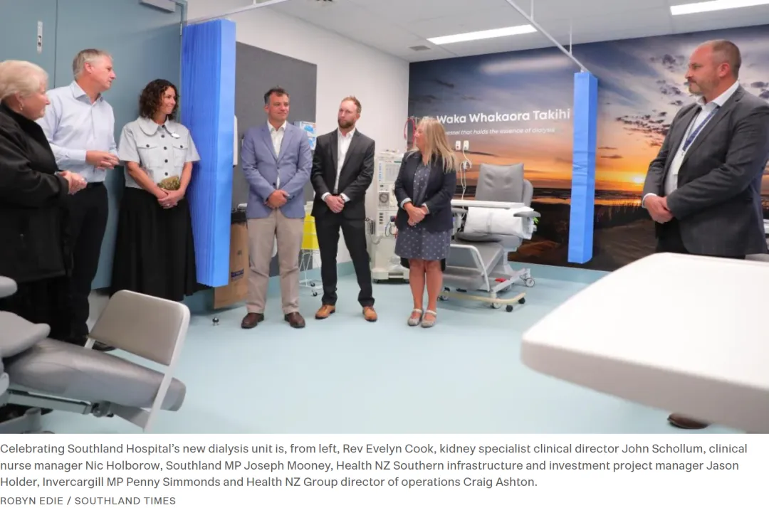 南地医院周一正式启用新的专用透析中心,预计每年可为南部地区的肾病患者减少约1000次前往但尼丁的长途治疗行程。新中心设有2至5张治疗椅,提供日间双班服务,并支持患者接受居家血液透析培训。
