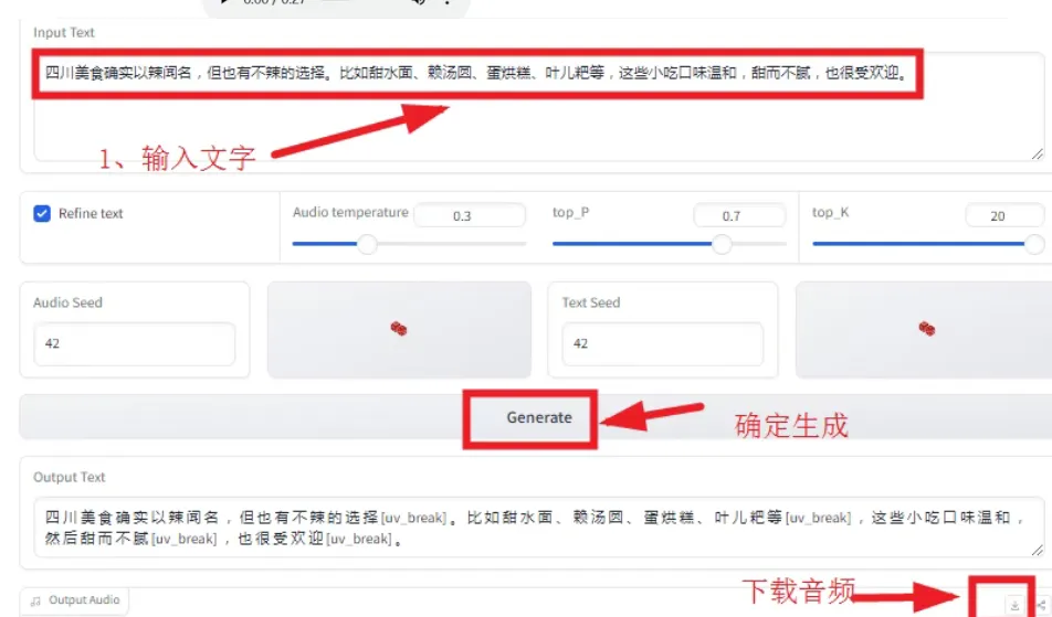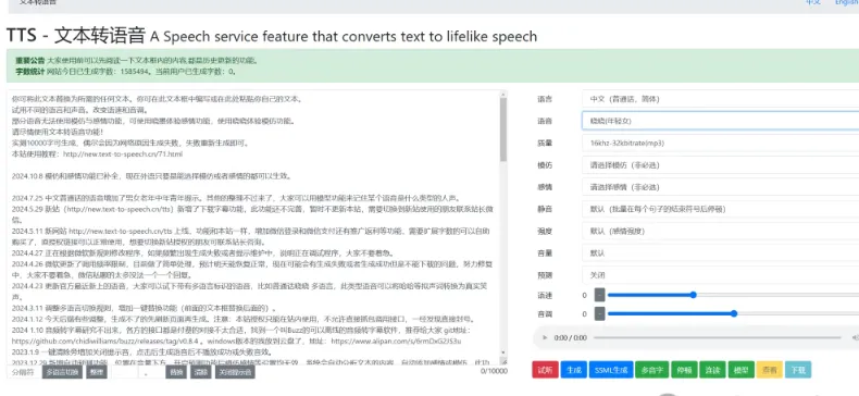 6. 输入文本→选择音色→调整参数→生成配音→导出MP3