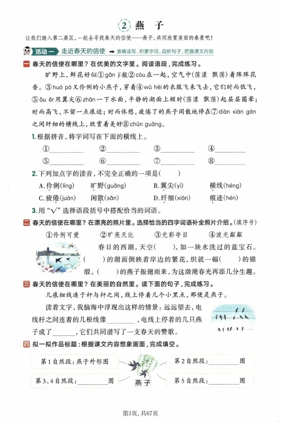 【免费下载】三年级(下)语文 一课一练1-4单元